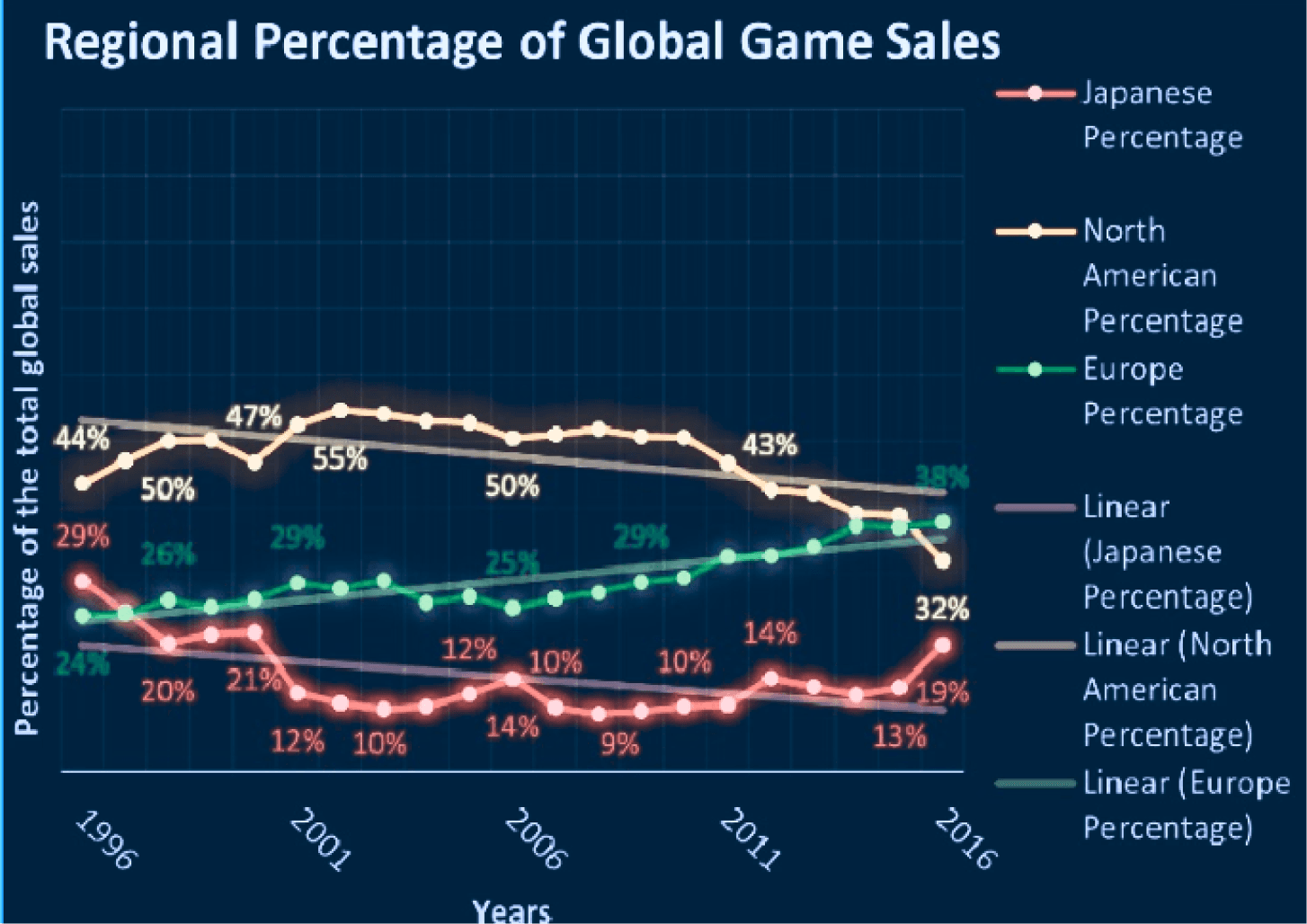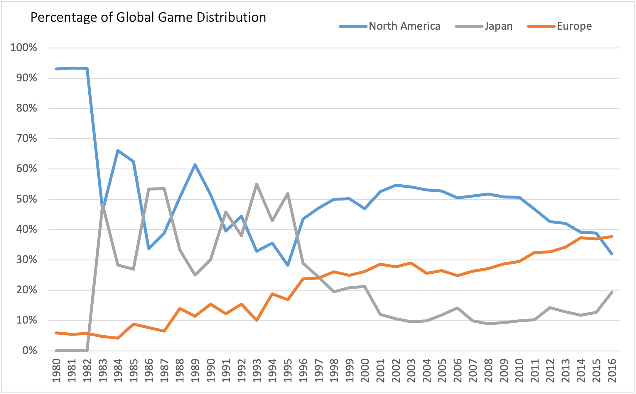 How have game sales figures varied between geographic regions over time?